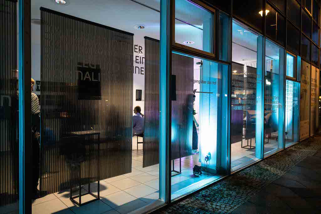 Jetzt reinhören!Eine dezentrale Ausstellung in Berlin: Temporäre Audiostühle verwandelten Orte wie die Markthalle Neun, die Stiftung Bildung, die TAZ Kantine oder den EUREF-Campus in kleine Inseln der Demokratie.